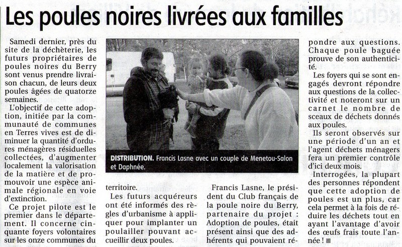 | Les poules noires livrées aux familles | Le Berry Républicain | octobre 2013 |  |