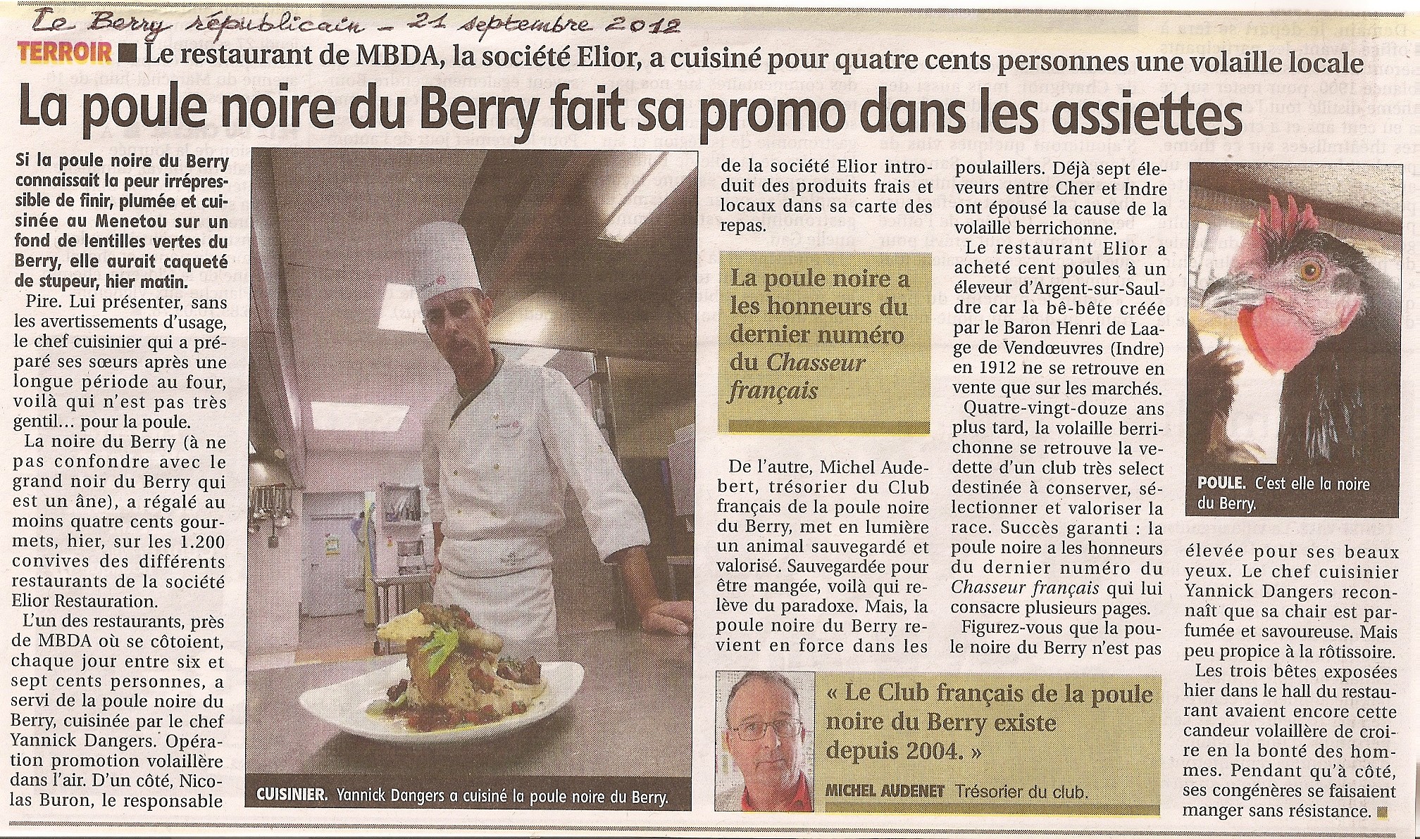 | La poule Noire du Berry fait sa promo dans les assiettes | Le Berry Républicain | 21 septembre 2012 |  |