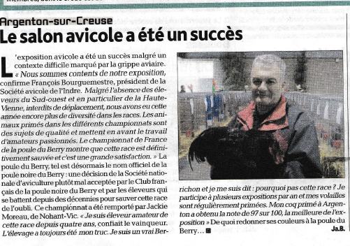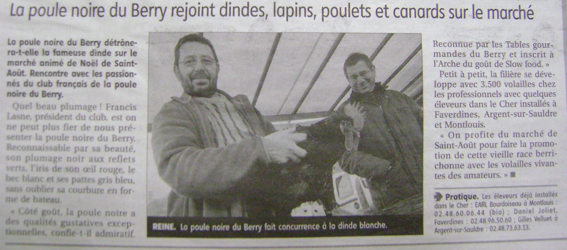 | Cocorico pour la Noire du Berry | La Nouvelle République | 12 mars 2012 | Lien |