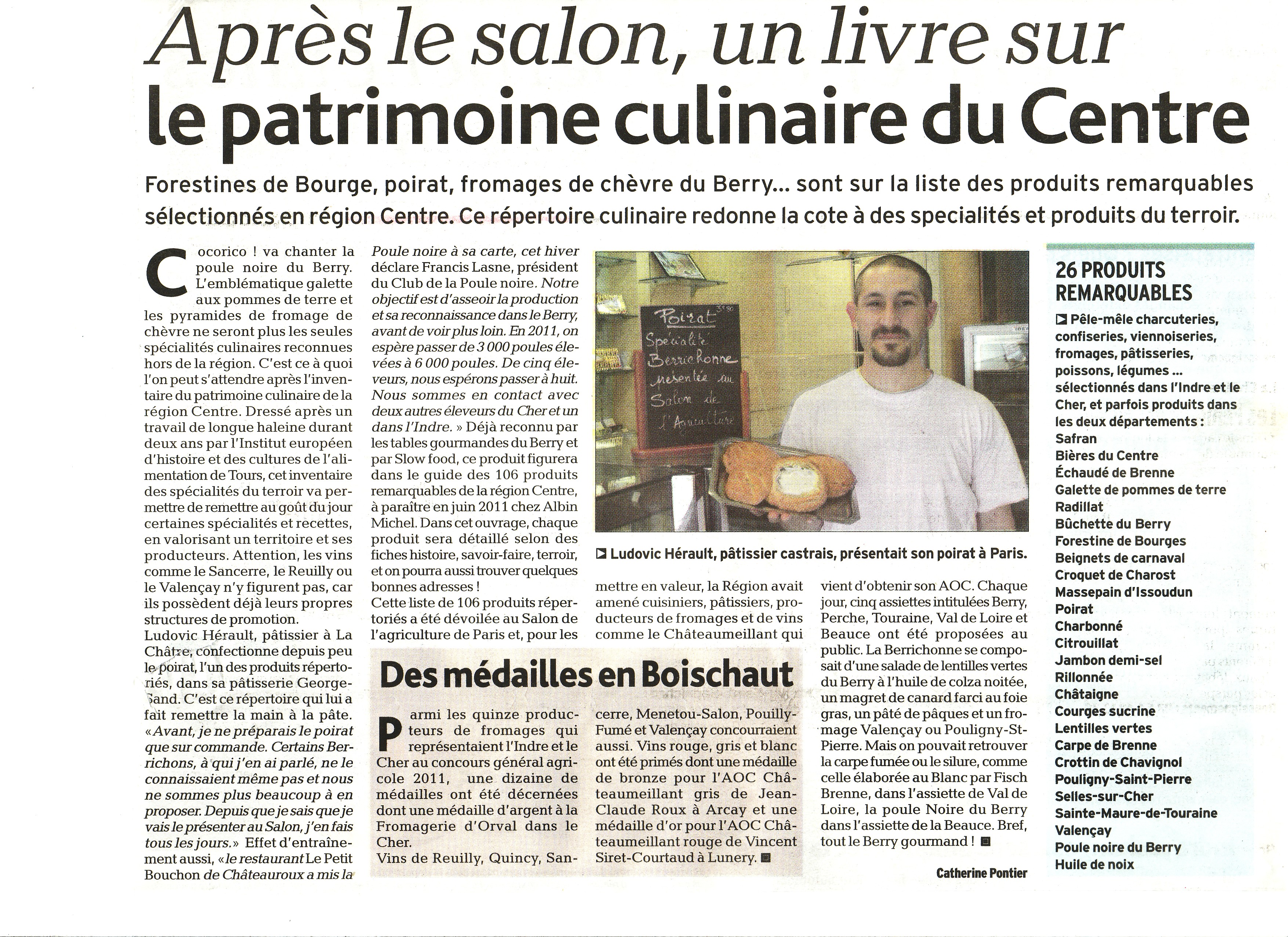 | Patrimoine culinaire du Centre | L'Echo du Berry | 2 mars 2011 |  |