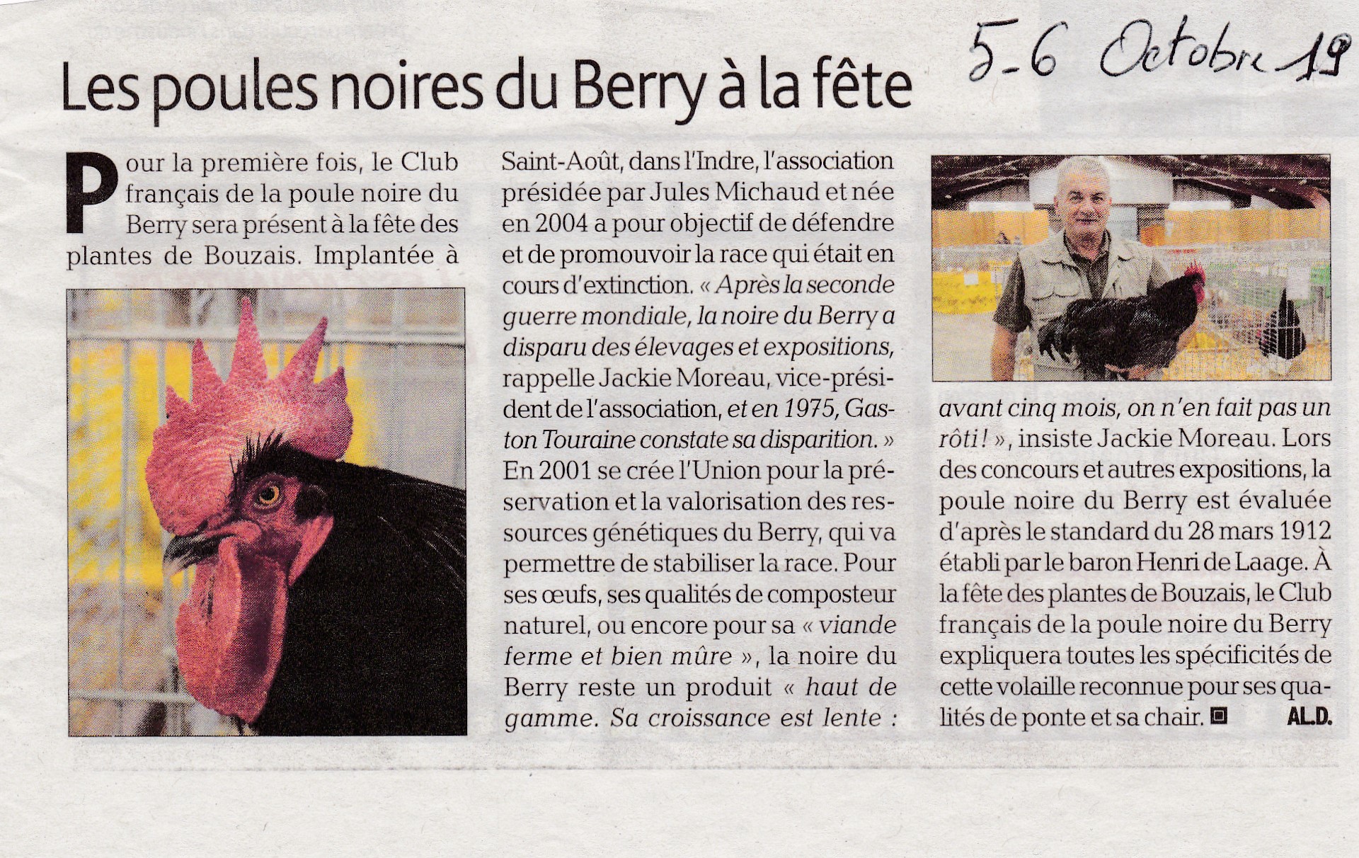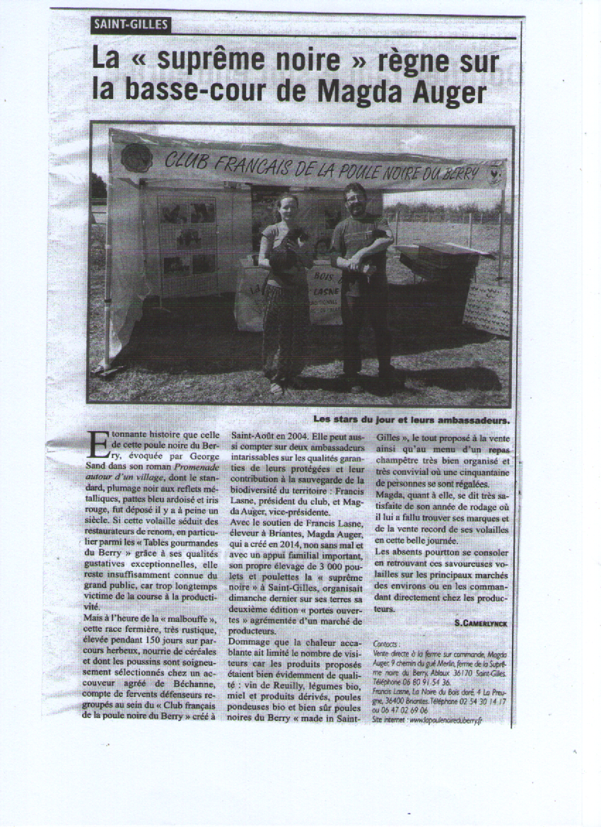 | La belle et suprême poule noire du Berry | La Nouvelle République | 03 septembre 2014 | Lien |