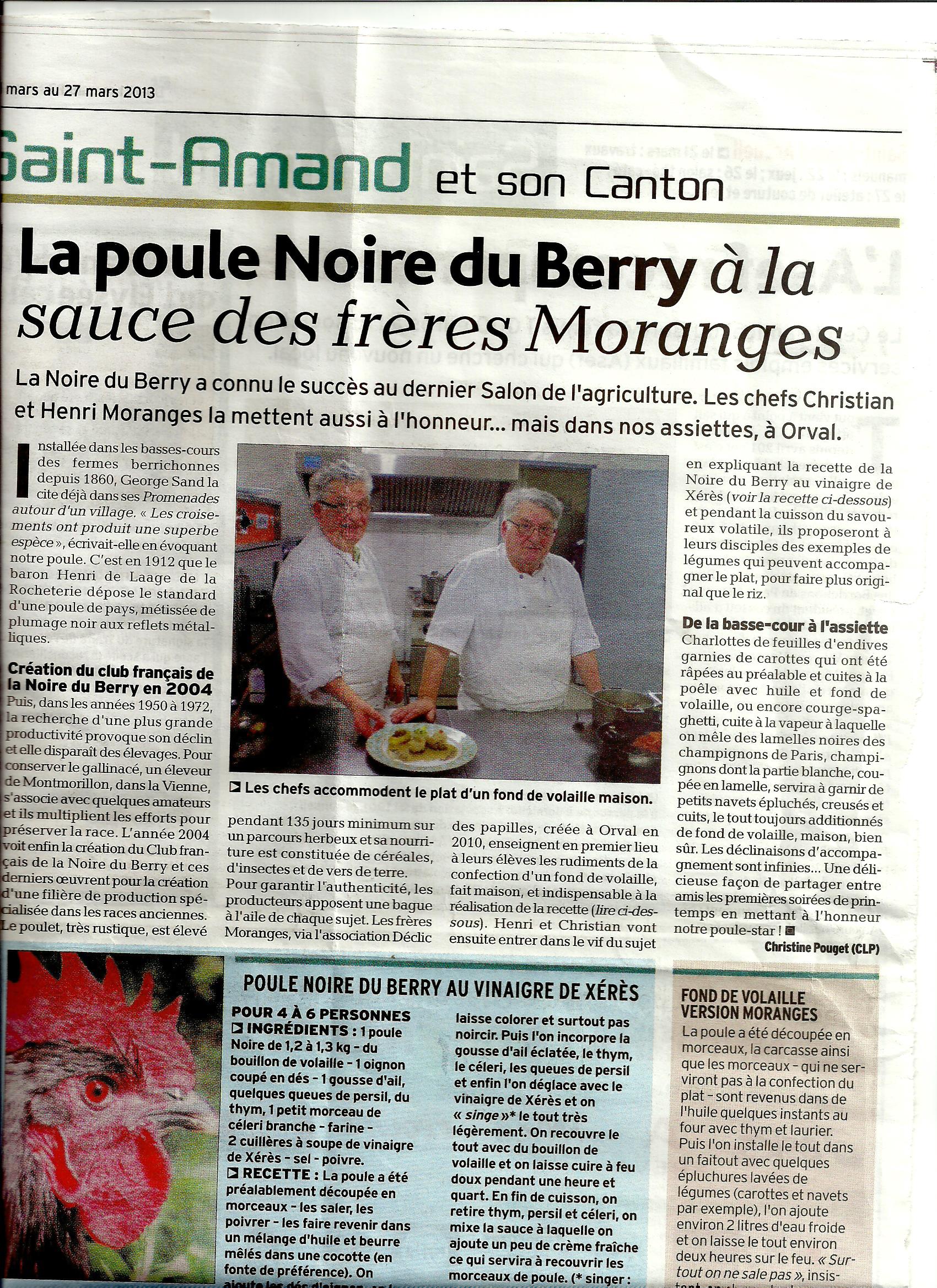 | La poule Noire du Berry à la sauce des frères Moranges | L'Echo du Berry | 21 mars 2013 |  |