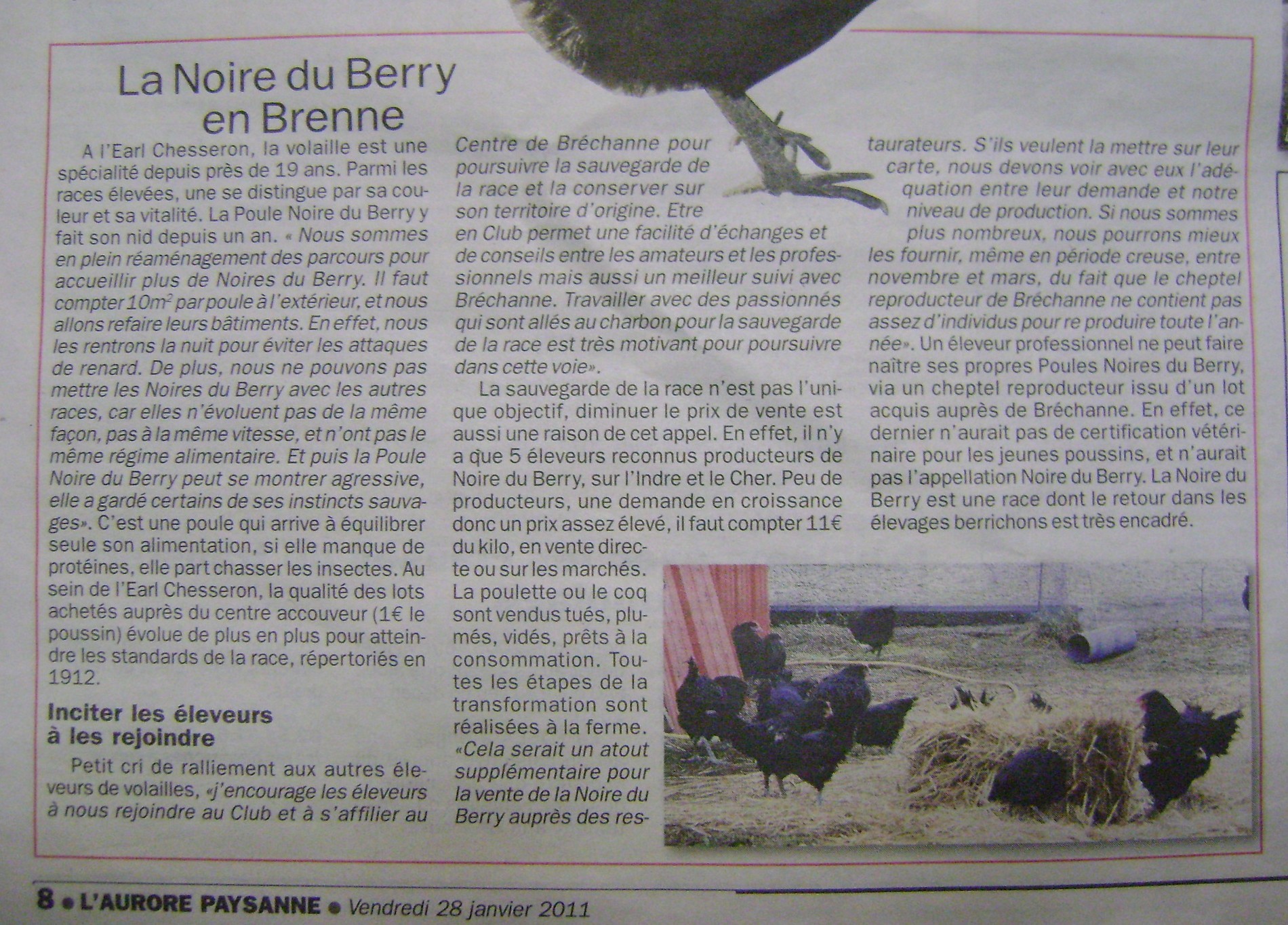 | La Noire du Berry en Brenne | L'Aurore paysanne | 28 janvier 2011 |  |